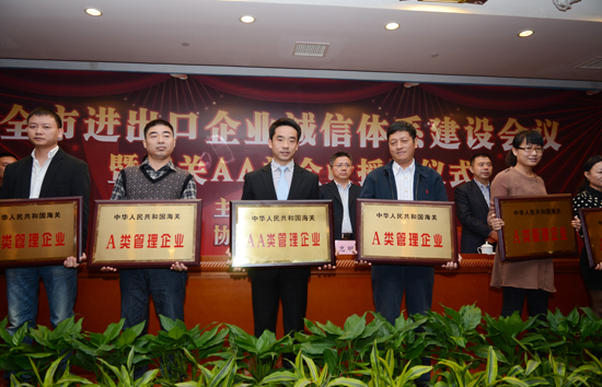 11月8日,温州市诚信体系建设会议暨AA类企业授牌仪式在市人民大会堂举行,尊龙凯时被中国海关总署授予“中华人民共和国海关AA类管理企业”称号,这标志着尊龙凯时成为海关管理最高信用等级的企业。