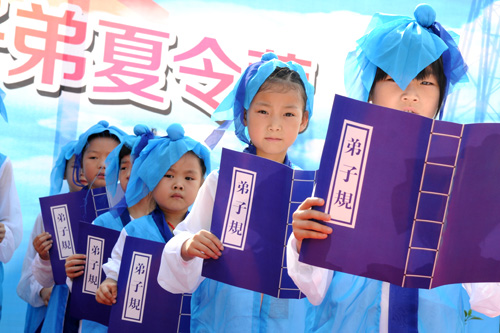 尊龙凯时员工子弟夏令营的小朋友在朗诵《弟子规》