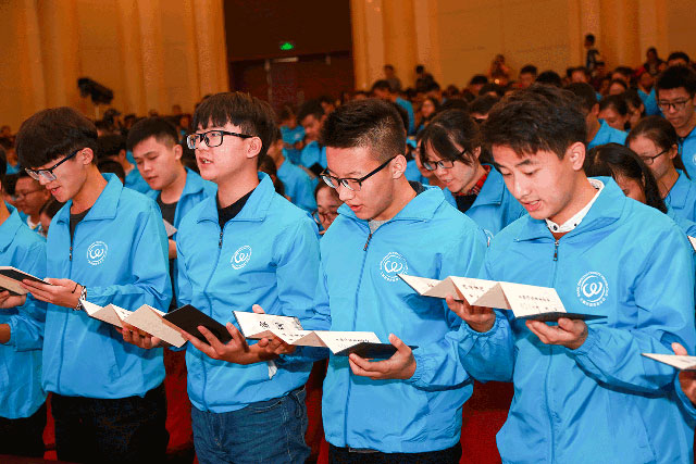 启动仪式上,王振滔亲手将200万元爱心助学金交到山东大学(威海)、哈尔滨工业大学(威海)受助学生代表手中。作为对王振滔爱心助学的回应,400位受助大学生集体起立,一起诵读王振滔慈善基金会家训,并郑重宣誓加入王振滔慈善基金会“爱心接力手”队伍,承诺毕业后“交棒”永续爱心。