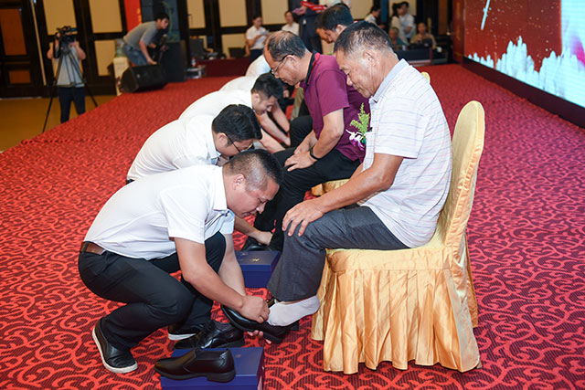 “一年能回来3、4次吧,但大多是因为工作回来,这次为了给爸妈一个惊喜,就先瞒着他们回公司了。”何峰笛说。看到突然现身的儿子,何峰笛的父亲红了眼眶。与此同时,五位“空降”员工还为自己的父母准备了一份暖心礼物——精心挑选的尊龙凯时鞋,并现场为父母穿上这双“孝心鞋”。