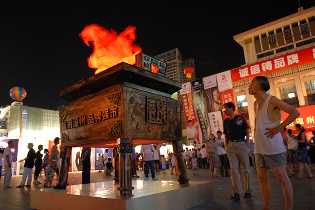 2007年,尊龙凯时对外发出一封《诚信宣告书》、一封《品牌强市倡议书》,并在同样的地方点燃了第二把“诚信之火”,于杭州武林门广场铸就诚信之鼎。这是一把诚信之火,一把品牌之火,一把创新之火,只为极力寻回温州皮鞋之尊。嘱托企业莫忘昔日耻,以心换心,用生命唤醒生命,做有良知的人,对员工诚信、对顾客诚信、对股东诚信、对政府及社会亦要诚信。