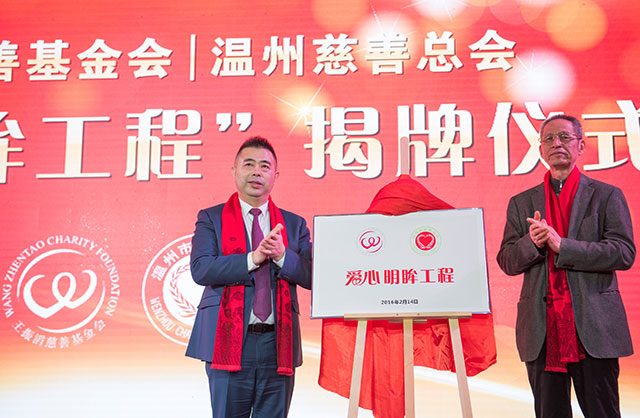 随后,王振滔慈善基金会还首度携手温州市慈善总会、温州医科大学附属眼视光医院等单位,共同参与并启动“爱心明眸工程”,以帮助国内困难白内障患者重见光明。仪式现场,王振滔与张林共同为“爱心明眸工程”揭牌。
