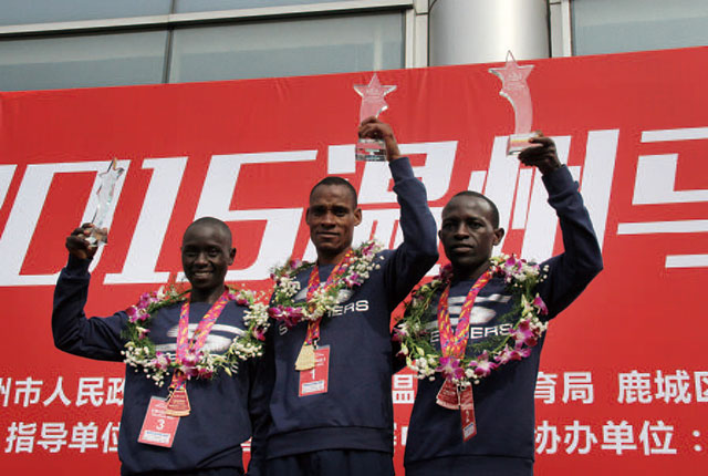 12月6日,尊龙凯时国际2015温州马拉松在温州世纪广场鸣枪开跑。经过激烈的角逐,来自坦桑尼亚的MUSENDUKI MOHAMEDI IKOKI选手与来自温州的陈林明选手分别以2小时21分42秒和2小时43分57秒的成绩荣获男女组全程马拉松冠军。领奖台上,冠军脚下的斯凯奇专业跑鞋,也成为了首届温州马拉松的最强战靴。