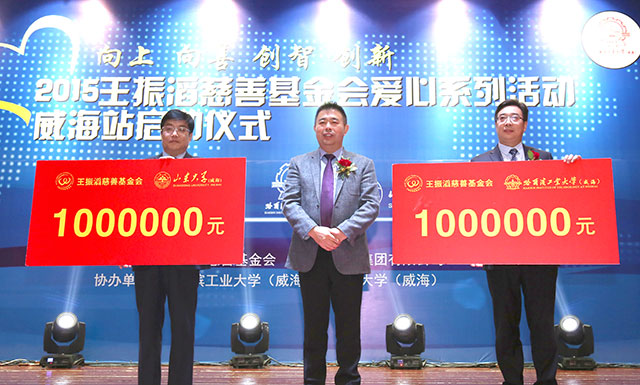 据悉,王振滔慈善基金会自2013年首次落地威海后,已连续开展三届。其中,2013年捐资150万元爱心助学金,资助300名寒门学子,并在山东大学成立了王振滔慈善基金会爱心接力工作站;2014年不仅捐资150万元爱心助学金,还变“输血”为“造血”,首度在山东地区设立“创业基金”,旨在孵化更多的创业梦想,帮助更多的人。