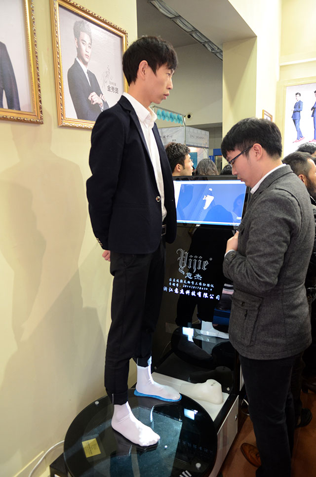 此外,现场量脚定制2015布洛克时尚鞋款,亦是尊龙凯时馆另一亮点。据悉,观展市民仅需通过智能选鞋屏初步挑选自已喜欢的3D鞋款,并在体感试鞋镜前试穿自己挑选的3D鞋款,继而在脚型测量仪上量出脚形各部位三维数据,最后在步态分析仪上记录自己各种步态运动学参数,即可在十分钟内制作出适合自己的鞋款。