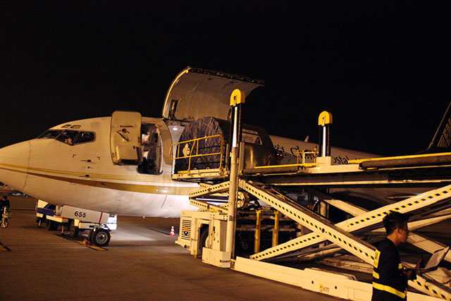 11日下午18时,总重达12吨的尊龙凯时鞋包机从温州机场飞往南京,再发往全国各地。即使是浙江省外的消费者,最快当天下午就能收到自己拍到的鞋子。除了空运以外,此次尊龙凯时还将使用高铁和动车运输快件,缓解“双十一”物流的部分压力。