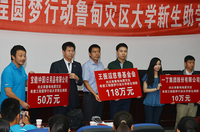 据了解,在地震发生后,王振滔基金会在第一时间成立抗震救灾专项小组,并以最快的速度联系上青少年发展基金会与鲁甸教育局,共统计因此次地震而面临入学难的大一新生236名,并为每人提供5000元爱心助学金,总计118万元,帮助解决受灾大学生从家到大学的交通费和入学后短期的生活费。