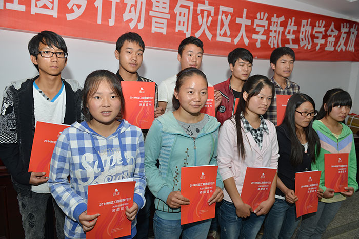 8月20日,由中国青少年发展基金会组织发起的“‘助学@昭通’希望行”大学新生助学金发放仪式,在鲁甸第一中学举行。在捐赠活动现场,来自鲁甸的学生从王振滔慈善基金会代表手中接过5000元的爱心助学金,用来支付大学学费。同时,为深入了解地震灾区学子的受灾情况,王振滔基金会还赶赴本次地震的重灾区龙头山镇对5名受灾大学新生进行家访,实地了解地震灾情及学生家庭受灾情况。