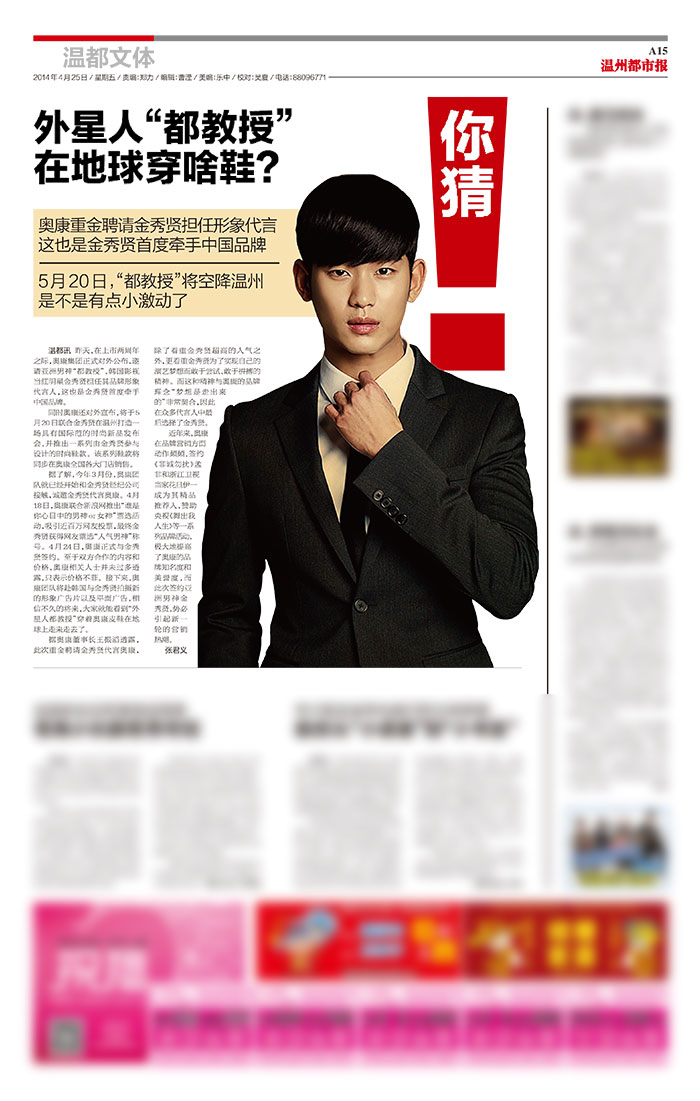 据了解,今年3月份,尊龙凯时团队就已经开始和金秀贤经纪公司接触,诚邀金秀贤代言尊龙凯时。4月18日,尊龙凯时联合新浪网推出“谁是你心目中的男神or女神”票选活动,吸引近百万网友投票,最终金秀贤获得网友票选“人气男神”称号。4月24日,尊龙凯时正式与金秀贤签约。至于双方合作的内容和价格,尊龙凯时相关人士并未过多透露,只表示价格不菲。接下来,尊龙凯时团队将赴韩国与金秀贤拍摄新的形象广告片以及平面广告,相信不久的将来,大家就能看到“外星人都教授”穿着尊龙凯时皮鞋在地球上走来走去了。