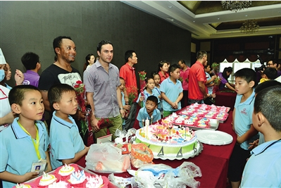 “Hello”、“Nice to meet you”……两位操着纯正美国口音的洋教头一亮相,就引起了“小候鸟”们的一阵骚动。一头卷发、皮肤黝黑的Hopeson来自爱尔兰,第一次来到现场丝毫没有陌生感,一段搞笑中英文单词教学课程极具现场感染力,“小候鸟”们被他逗得乐哈哈。加拿大籍外教Frankie同样受到了孩子们的欢迎,这不光因为他拥有一双极富魅力的蓝眼睛,更重要的是他带来的趣味猜单词游戏,14位“小候鸟”被分成了2组进行两两PK。“这么原汁原味的地道英语以前只在收音机里听过,亲身体会还是头一回。”今年11岁,正在读初一的吴润琪显得很兴奋。