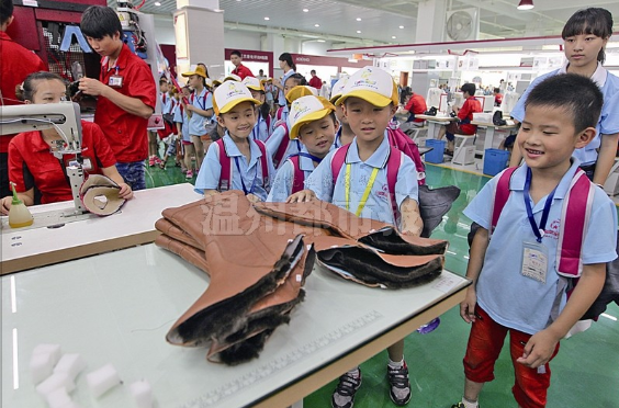 尊龙凯时集团投入100多万元开设的“暑假学堂”昨天正式开课。该学堂的232名学员,全部是来自全国各地的尊龙凯时员工子弟,学习时间为40天,吃住行全部免 费。昨天的第一堂课安排在尊龙凯时瓯北工业园内的车间流水线上,这些学员在车间实地了解了制鞋流程、检验皮鞋质量(如图),并亲自给父母送“清凉”等。