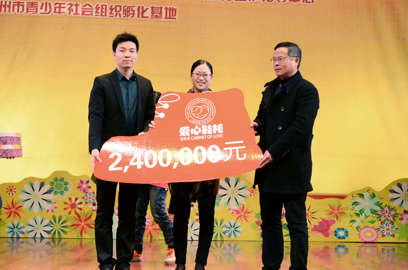 年关将近,外来务工人员的子女即将跟随他们的父母回家过年,为了能让他们回家过上一个温暖的新年,1月26日,在“温州情•志愿红暨温州派遣志愿者欢庆十八大成果汇报演出”现场,王振滔慈善基金会公益项目“爱心鞋柜”向海城三小、瓯越小学等五十所学校的外来务工人员子女捐赠了12000双,价值240万元的爱心童鞋,让他们带着“温暖”回家过年。